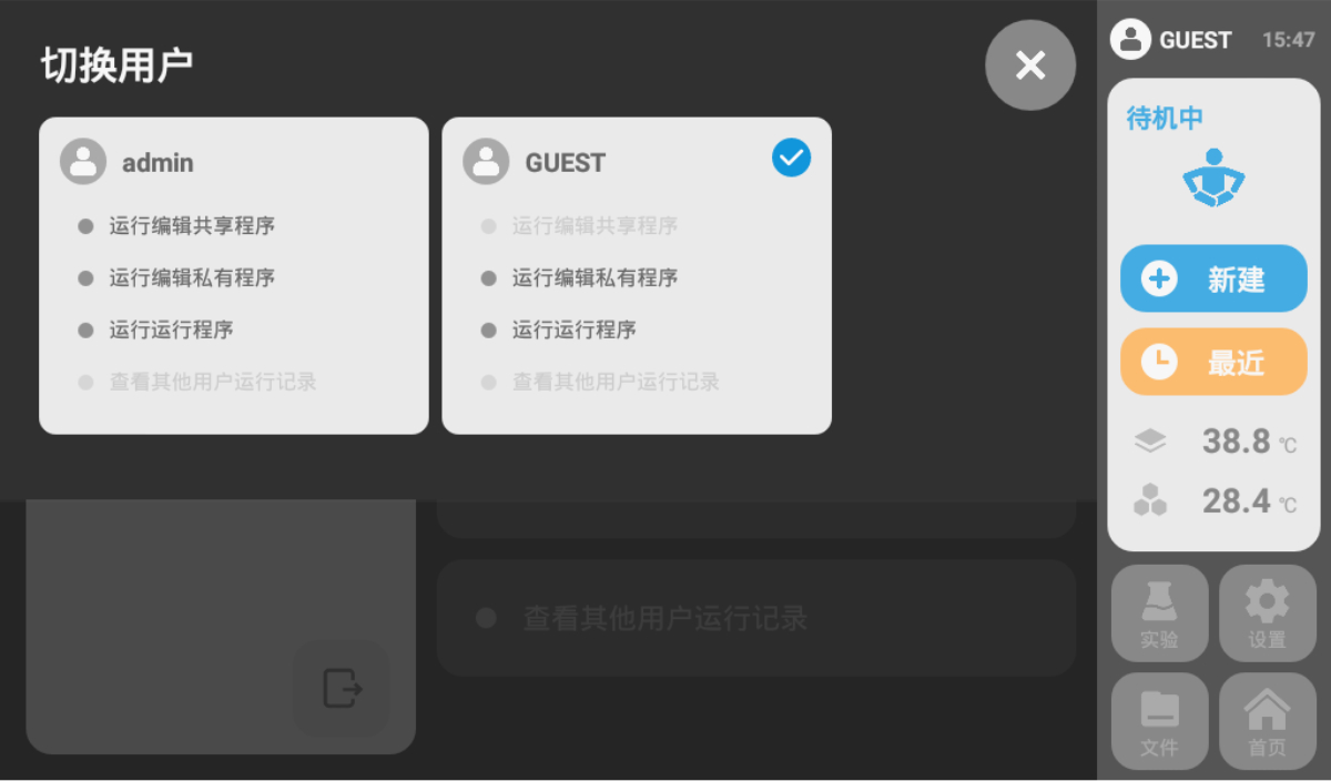用户权限 (共享文件/私有程序、运行程序、无游客) |