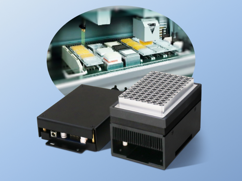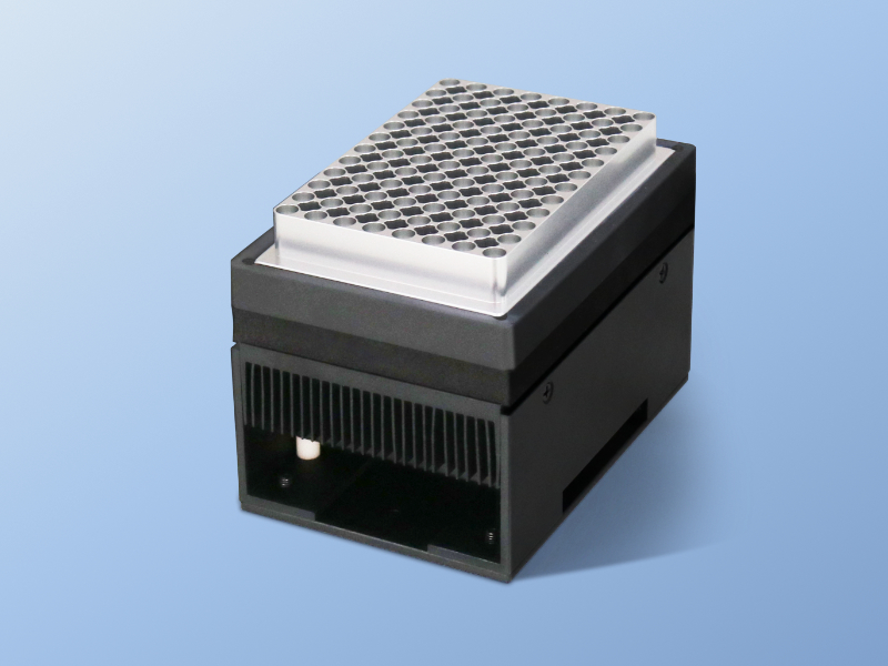 本单元采用半导体制冷技术,带有通讯接口,可接入自动化核酸提取、建库工作站系统,实现远端控制,设计紧凑,节省空间,方便布局。主要用于核酸提取工作站的孵育、裂解、冷藏、定点恒温等功能。可根据客户需求定制设计。