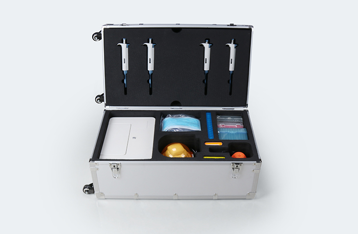 The eMLab16 Mobile PCR Lab is based on the EASTWIN eQ162C/eQ162CP/eQ164CP series fluorescent quantitative PCR instrument, and integrates common materials and consumables for PCR experiments. It is specially designed to facilitate mobile PCR experiments, including field operations, and emergency epidemic detection., as a rapid genetic testing product. The eMLab16 will work on the on-site nucleic acid detection experiment, including sampling, extraction, amplification and result analysis. It is a mini PCR laboratory that can be moved at any time and any where.