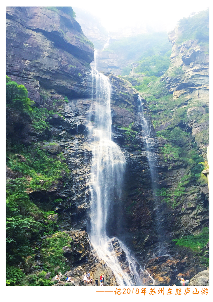 “不到三叠泉,不算庐山客”,位于东南九叠谷,被誉为“庐山第一奇观”的三叠泉怎能不去看看呢?于是,第三天,大家不顾炎炎酷暑,纵然汗流浃背,终如愿登顶!站在三叠泉附近的盘石仰望,见瀑布飞泄而下,声响轰鸣,气势磅礴,令人叹为观止!