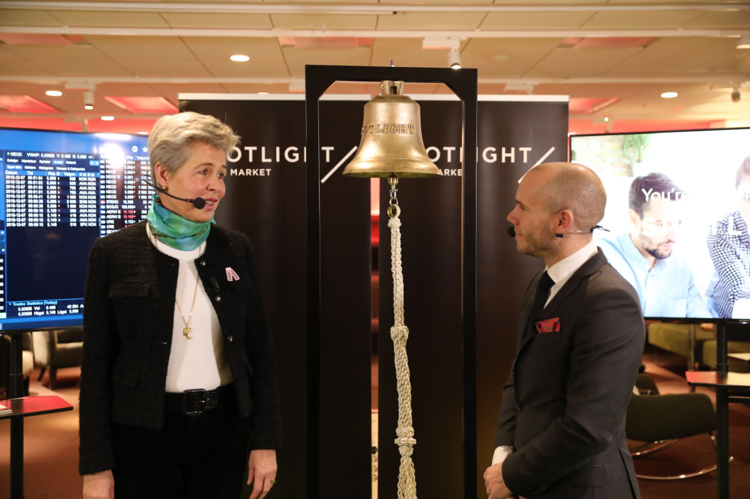 近日,瑞典新动力公司(NeoDynamics AB)成功登陆斯德哥尔摩股市Spotlight板,公司总经理 Anna Eriksrud 女士主持敲钟仪式并致辞,徐晓军教授代表新开源医疗集团出席敲钟仪式,并与新动力公司其他高管人员一起敲响神圣的上市宝钟!新开源医疗集团作为新动力公司第一大股东,谨此表示热烈祝贺!